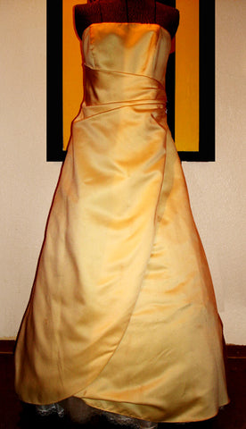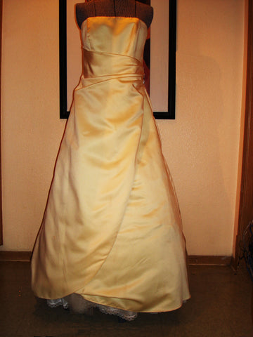 Davids Bridal gown, yellow full length with split in front.